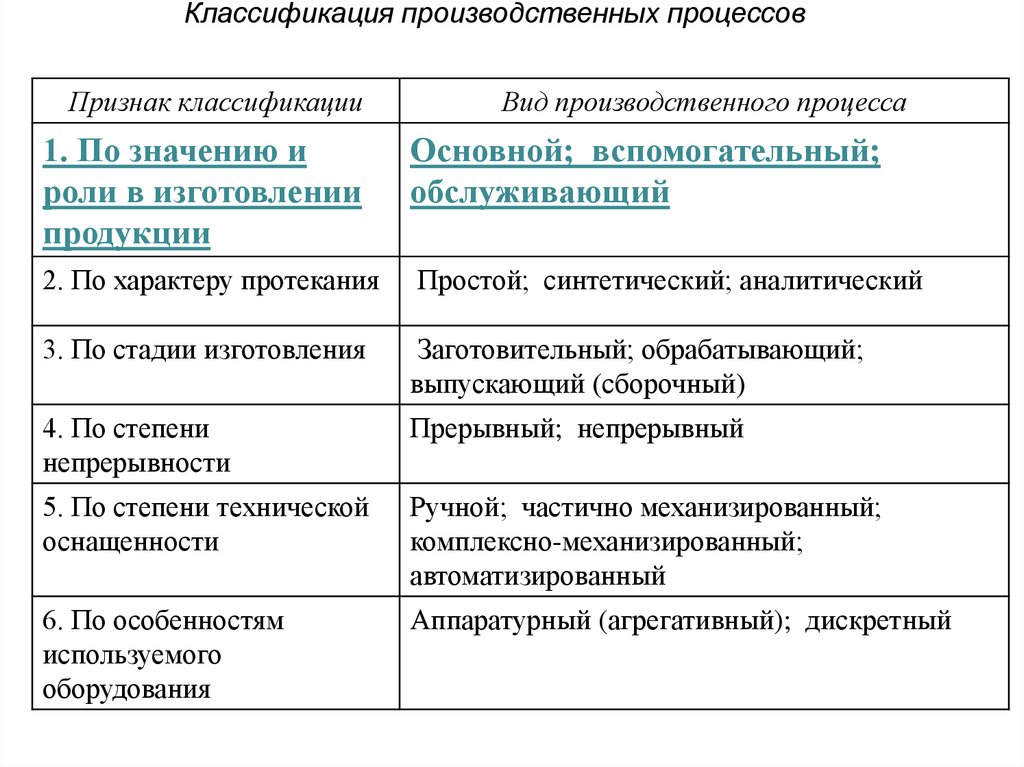 5. Классификация производственных процессов