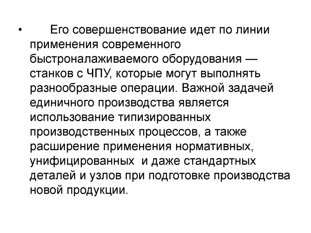 производства, а на предприятиях единичного типа изготовление унифицированных и широко