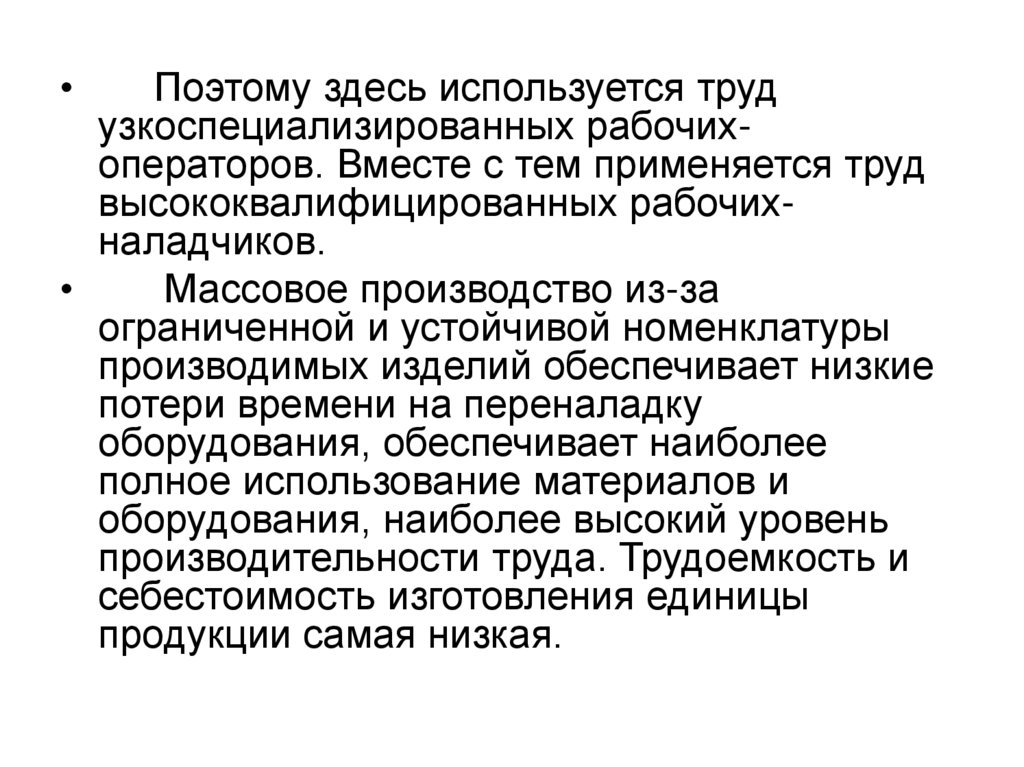 узкоспециализированных рабочихоператоров. Вместе с тем применяется труд