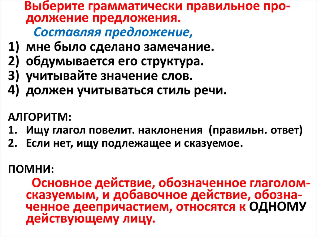 Выберите грамматически правильное продолжение предложения.Составляя предложение,
