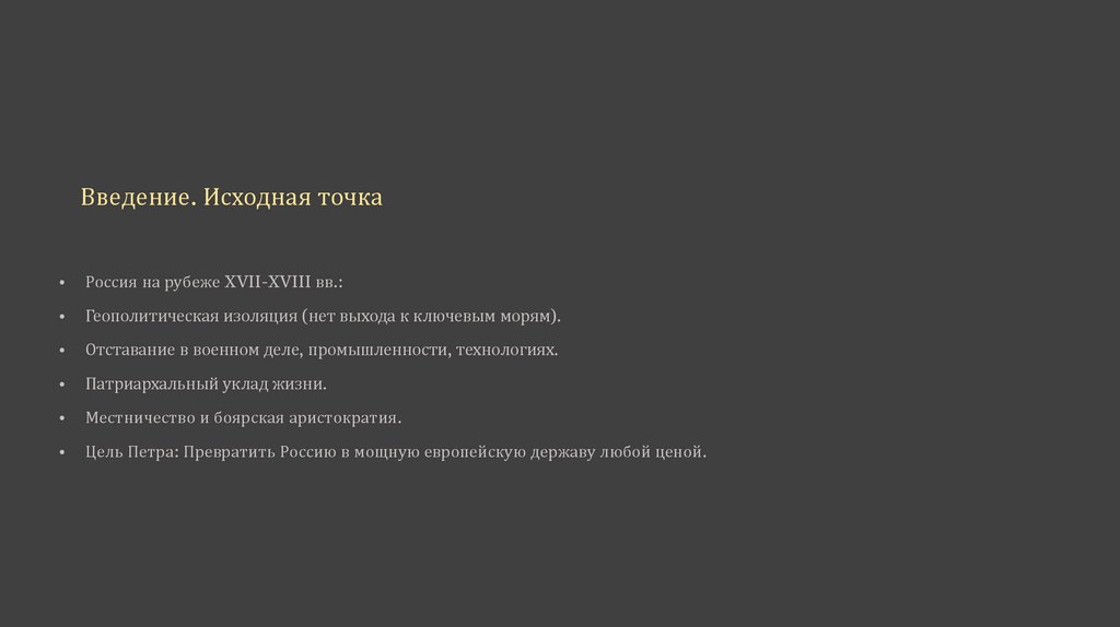 Введение. Исходная точкаРоссия на рубеже XVII-XVIII вв.: