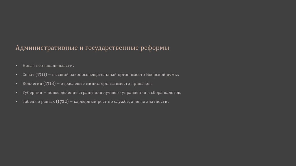 Коллегии (1718) – отраслевые министерства вместо приказов.
