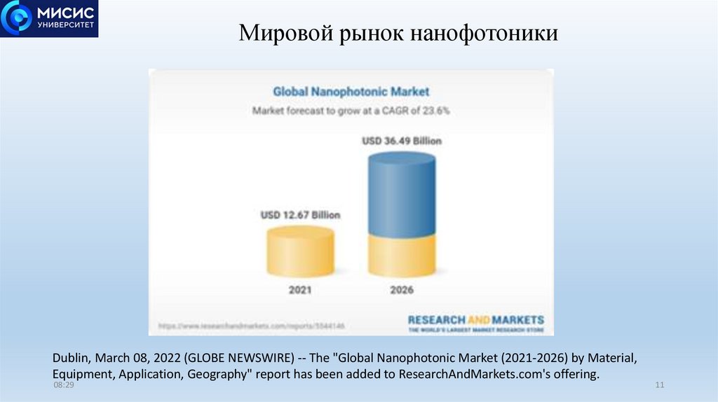 Мировой рынок нанофотоникиDublin, March 08, 2022 (GLOBE NEWSWIRE) -- The "Global Nanophotonic Market (2021-2026) by Material,