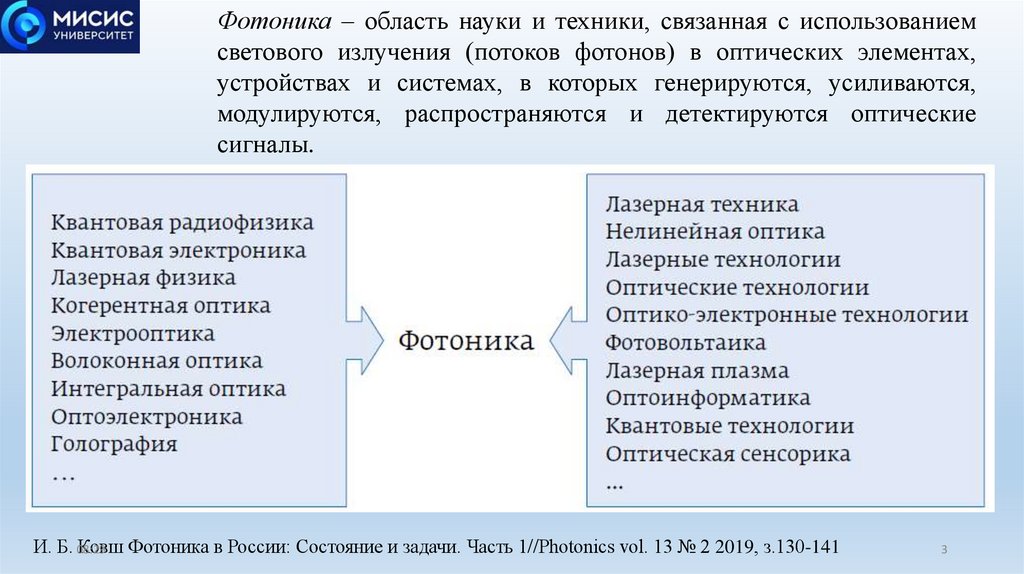 Ковш И. Б. Фотоника в России: состояние и задачи // Лазер-Информ. 2019. № 4 (643). С. 1–16. 8