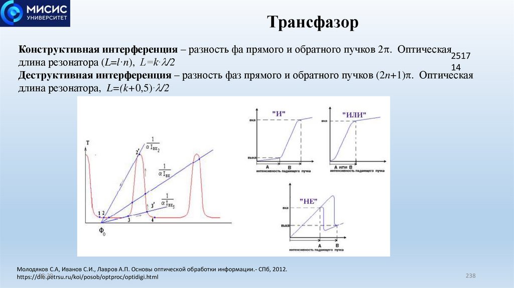 ТрансфазорКонструктивная интерференция – разность фа прямого и обратного пучков 2 . Оптическая