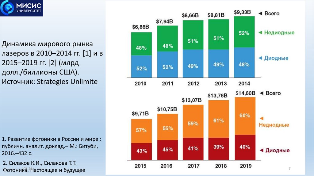 Динамика мирового рынкалазеров в 2010–2014 гг. [1] и в