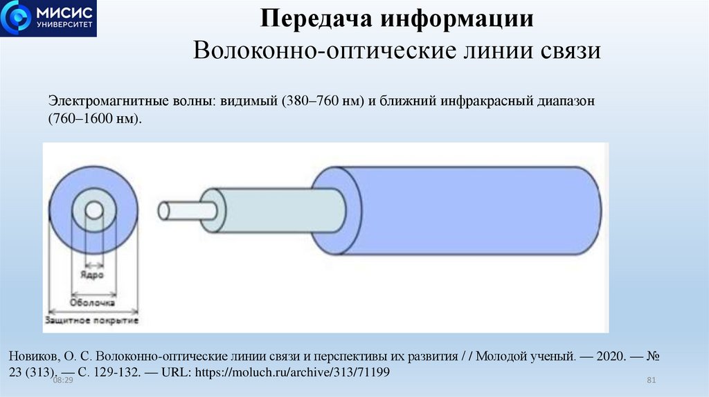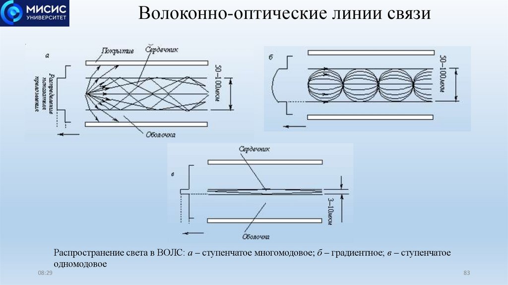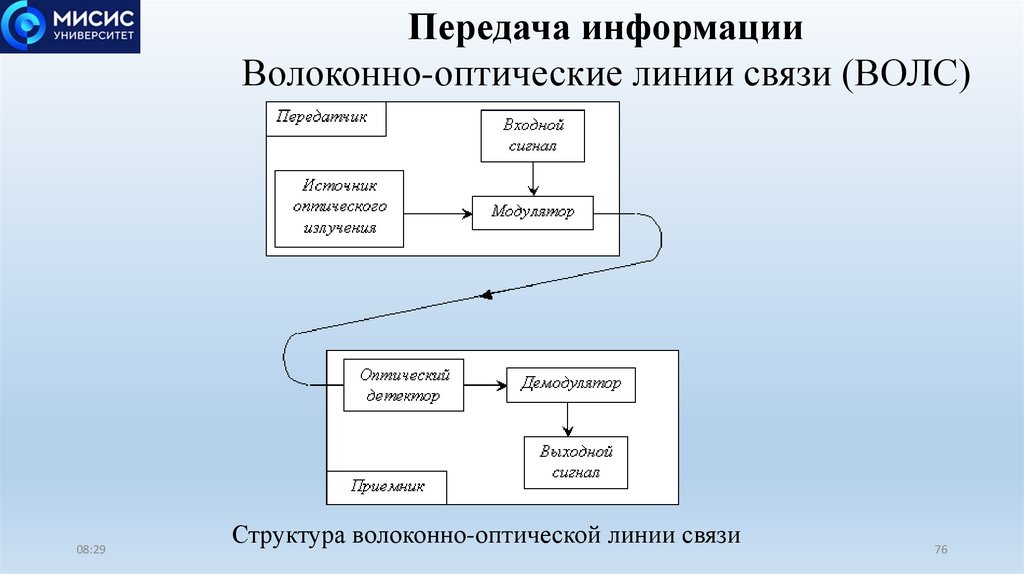 • Информация, которая закодирована оптическим лучом, может передаваться без