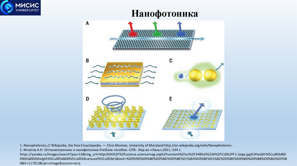 Нанофотоника1. Nanophotonics // Wikipedia, the free Encyclopedia. — Chris Monroe, University of Maryland http://en.wikipedia.org/wiki/Nanophotonics .
