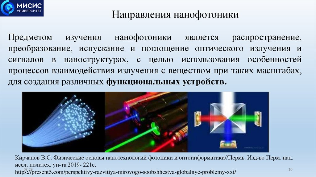 Направления нанофотоникиПредметом изучения нанофотоники является распространение,