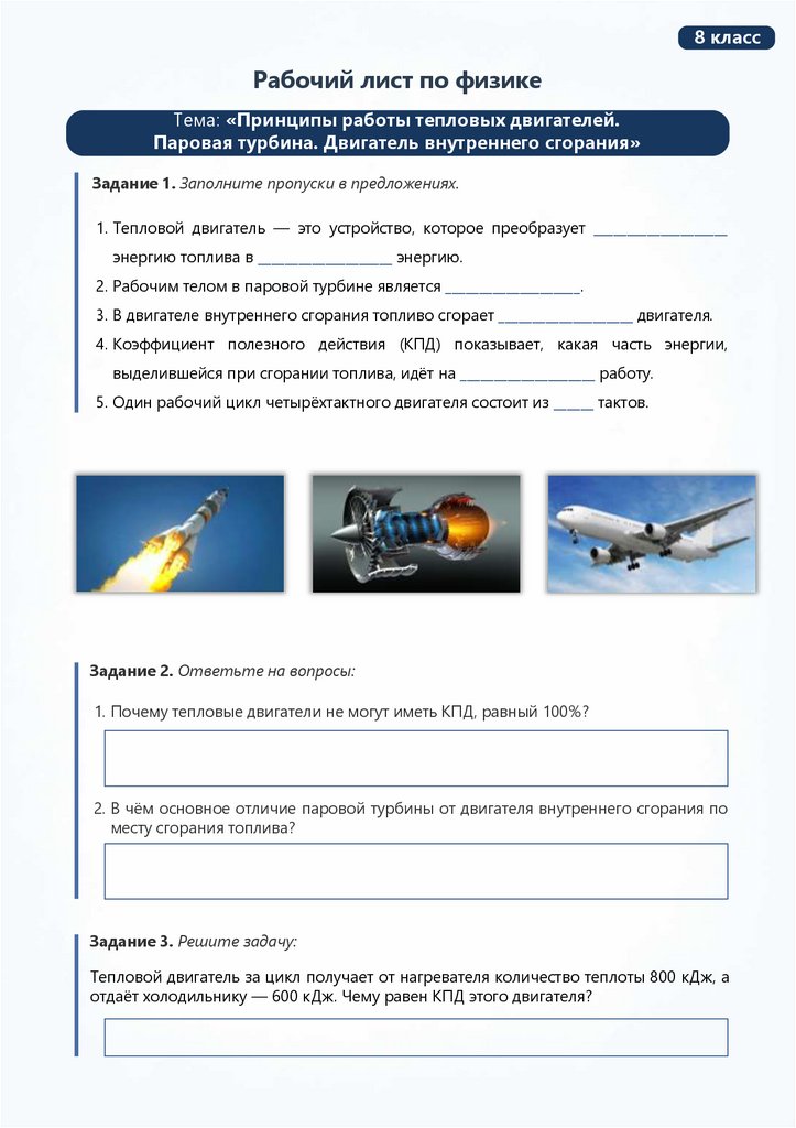 1. Тепловой двигатель — это устройство, которое преобразует ____________________