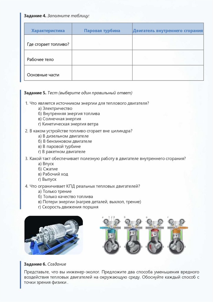 2. В чём основное отличие паровой турбины от двигателя внутреннего сгорания по