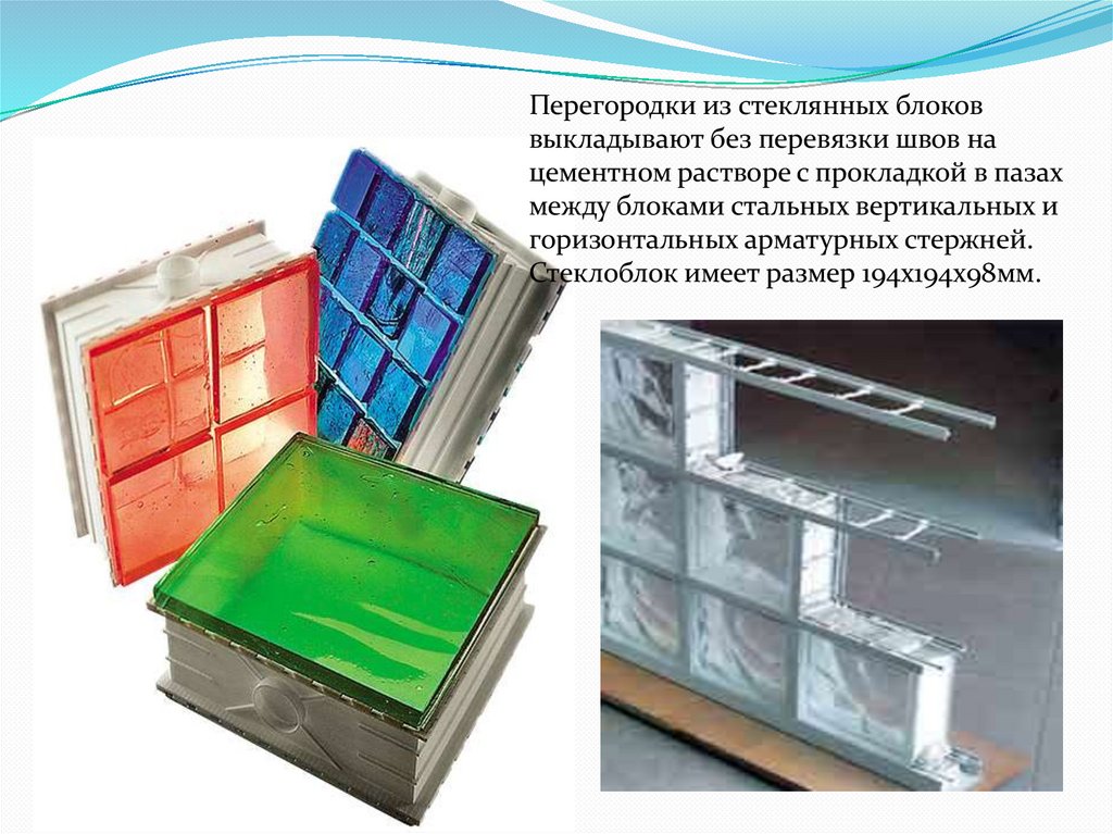 Перегородки из стеклянных блоковвыкладывают без перевязки швов на