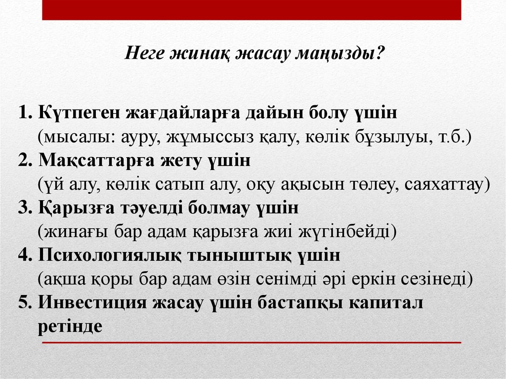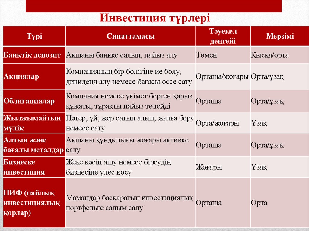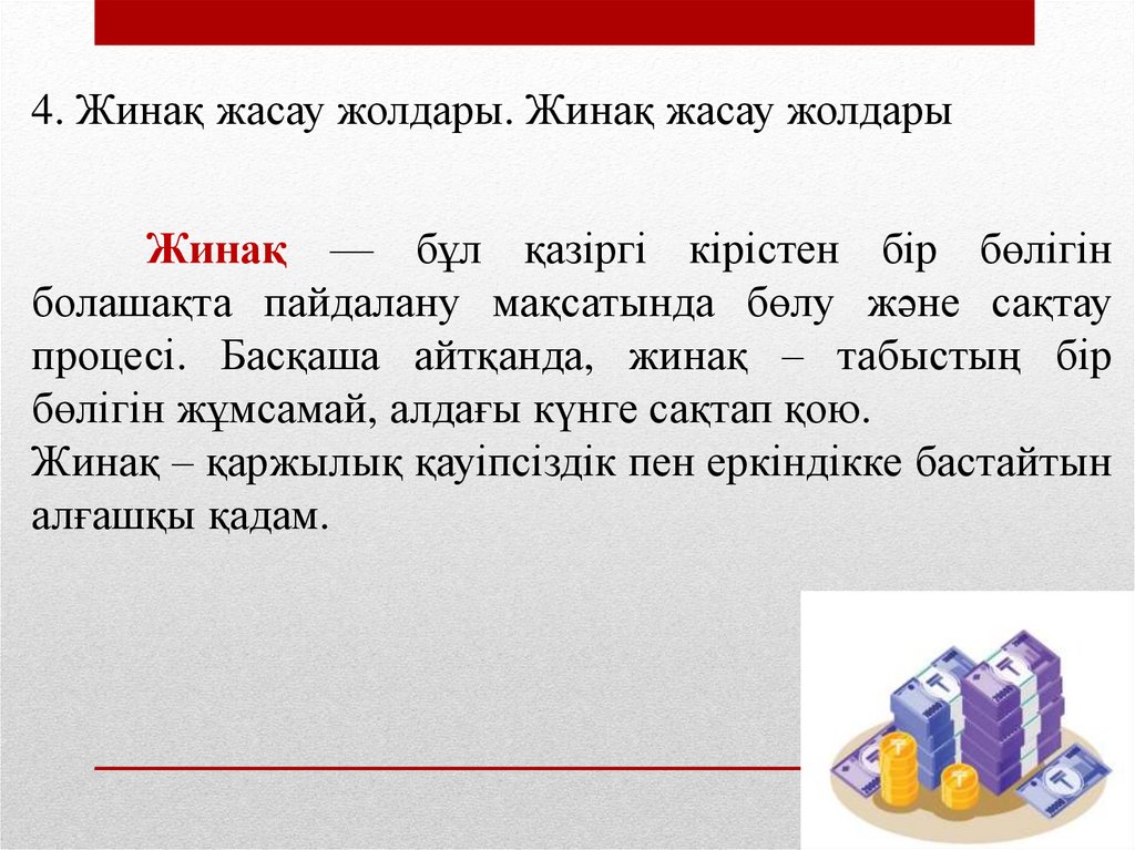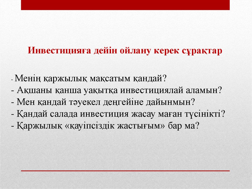 4. Жинақ пен инвестиция – болашақта қажет болатын немесе