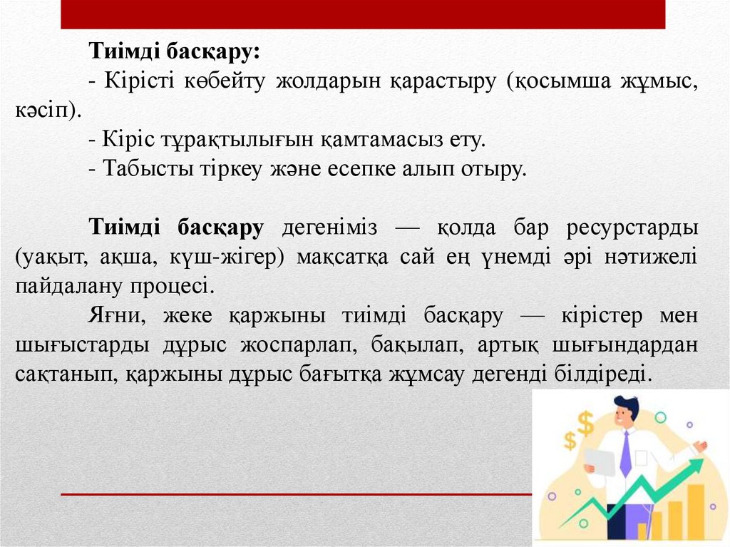 Яғни, жеке қаржыны тиімді басқару — кірістер мен