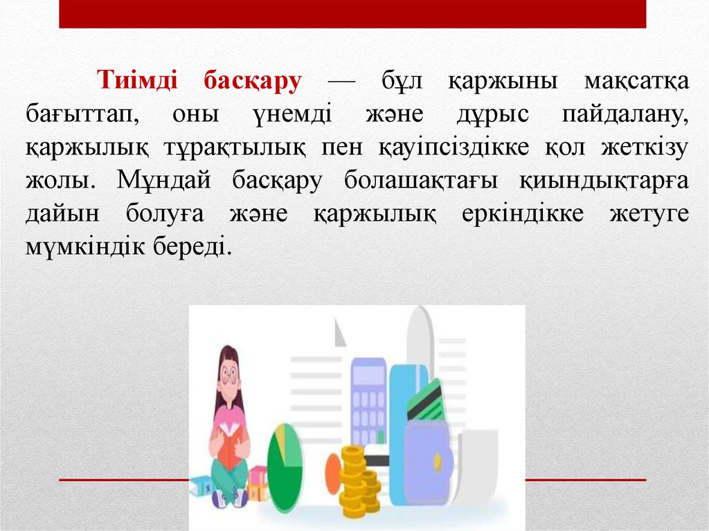 Тиімді басқару — бұл қаржыны мақсатқабағыттап, оны үнемді және дұрыс пайдалану,