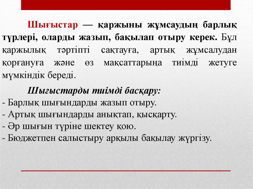 шығыстарды дұрыс жоспарлап, бақылап, артық шығындардан