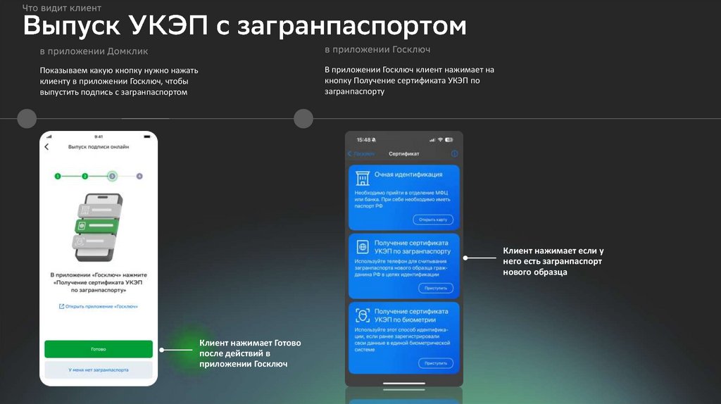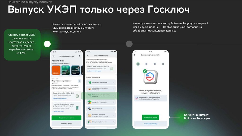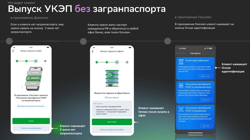 В приложении Госключ клиент нажимает накнопку Получение сертификата УКЭП по