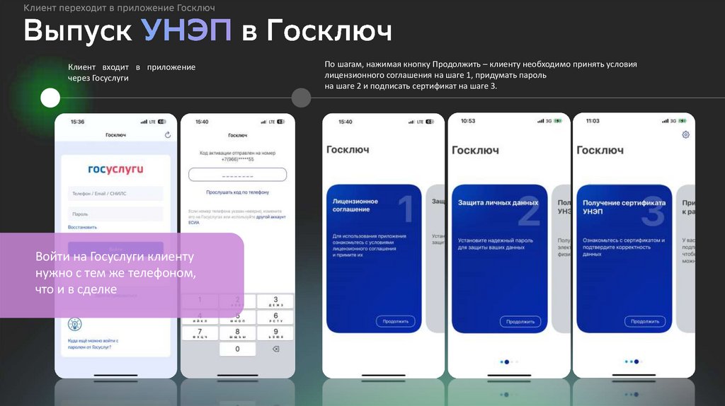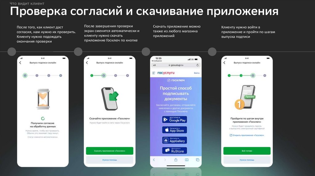 По шагам, нажимая кнопку Продолжить – клиенту необходимо принять условия