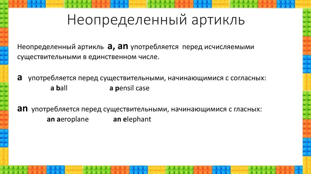 Неопределенный артикльНеопределенный артикль a, an употребляется перед исчисляемыми