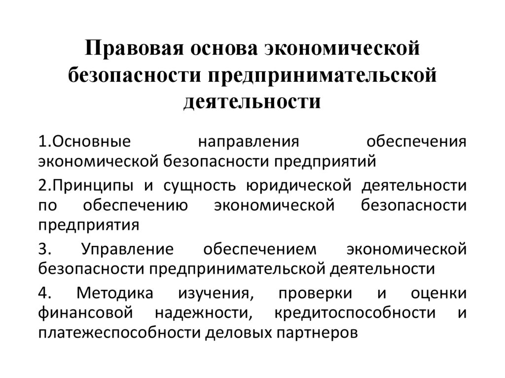 1. Правовая основа экономической безопасности предпринимательской деятельности