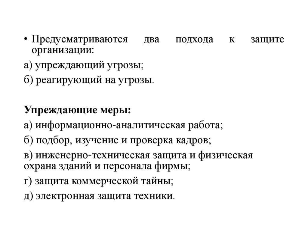 26. Организационные мероприятия по обеспечению экономической безопасности