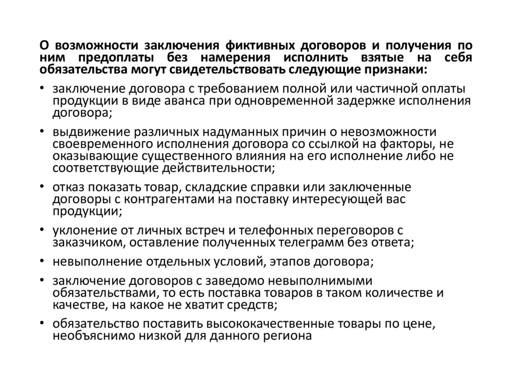 О возможности заключения фиктивных договоров и получения поним предоплаты без намерения исполнить взятые на себя