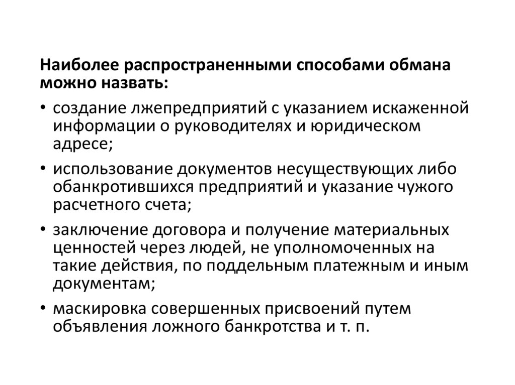 Наиболее распространенными способами обманаможно назвать: