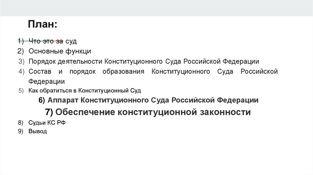 3) Порядок деятельности Конституционного Суда Российской Федерации