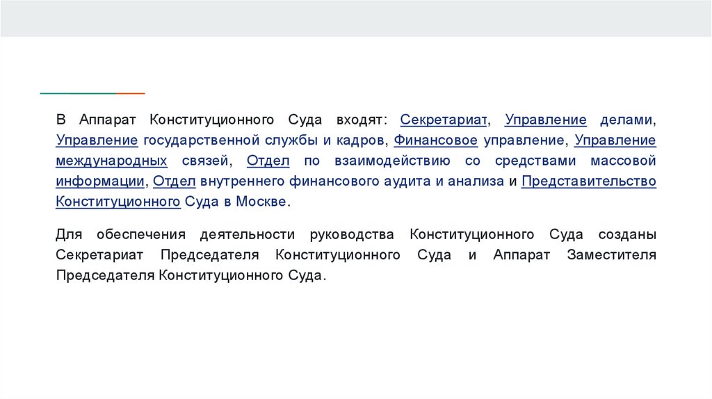 Для обеспечения деятельности руководства Конституционного Суда созданы