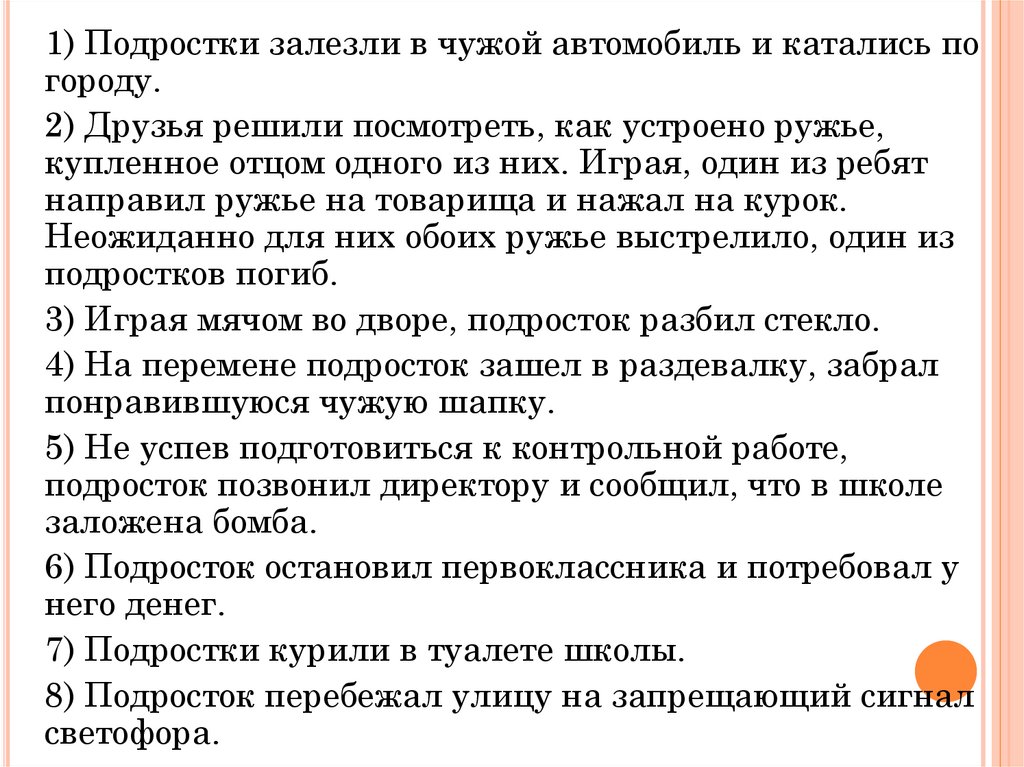 1) Подростки залезли в чужой автомобиль и катались погороду.