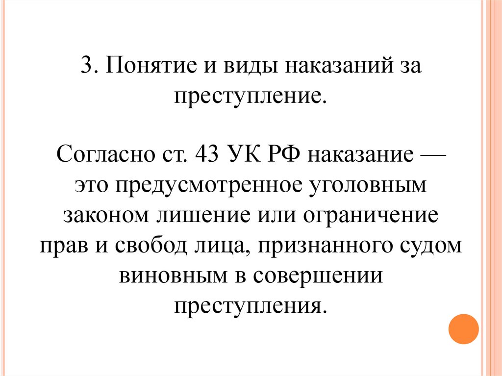 3. Понятие и виды наказаний запреступление.