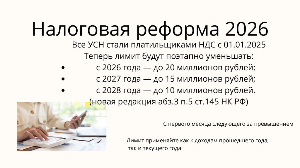 Налоговая реформа 2026Все УСН стали платильщиками НДС с 01.01.2025