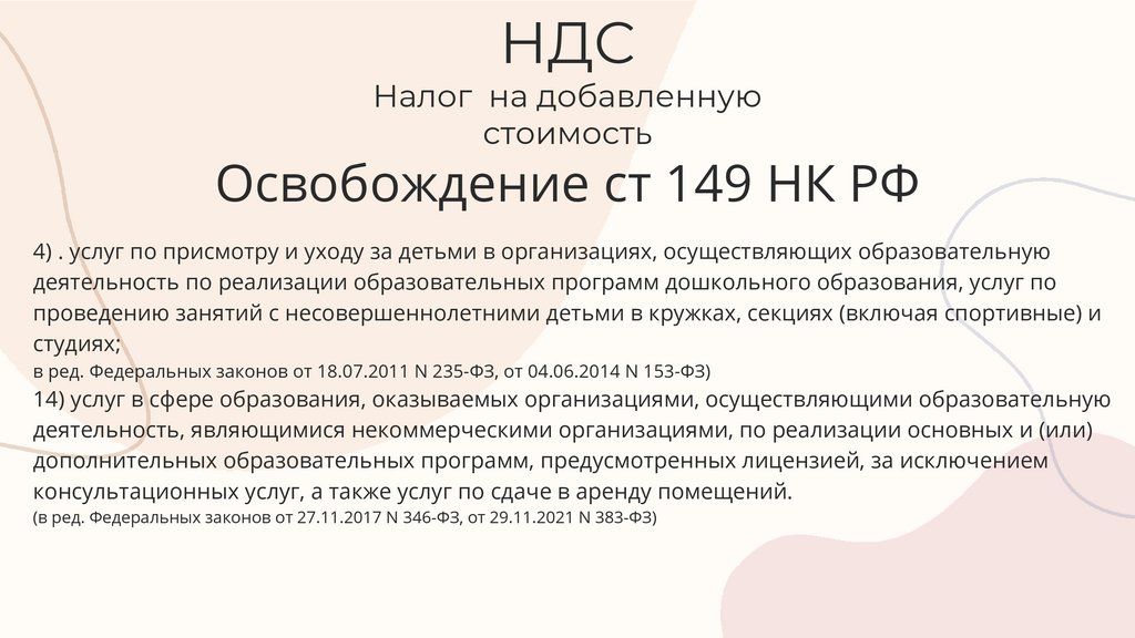 14) услуг в сфере образования, оказываемых организациями, осуществляющими образовательную