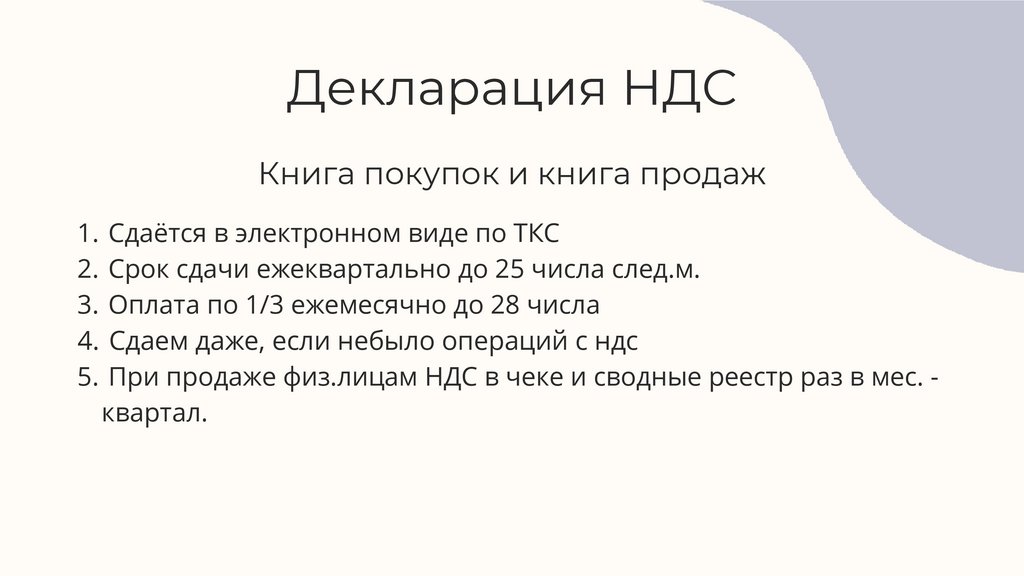 5. При продаже физ.лицам НДС в чеке и сводные реестр раз в мес. квартал.