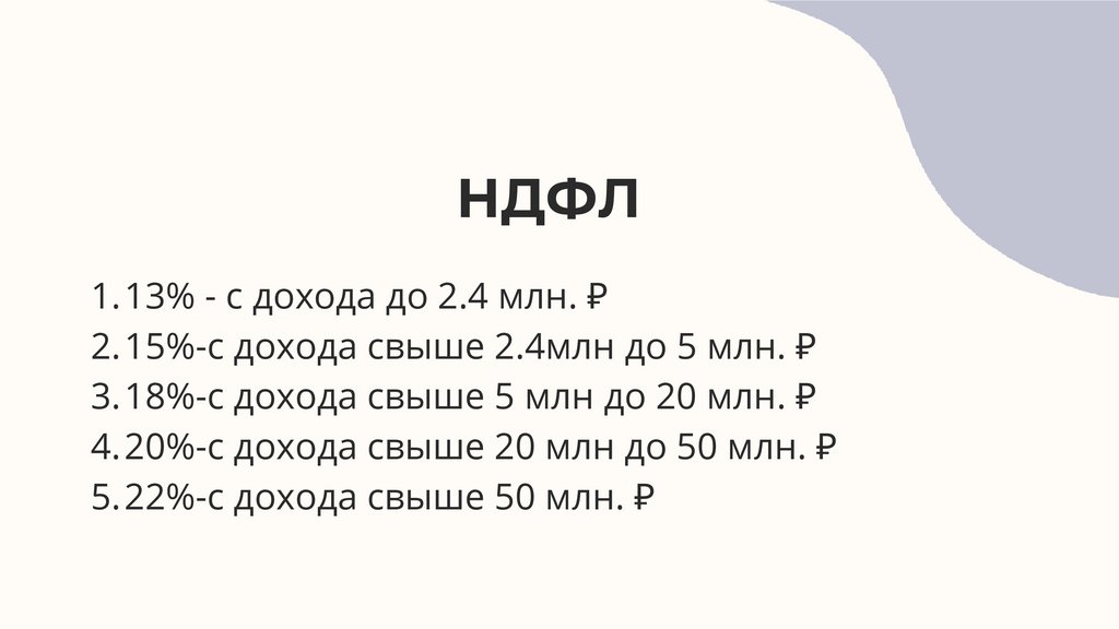 НДФЛ1. 13% - с дохода до 2.4 млн. ₽
