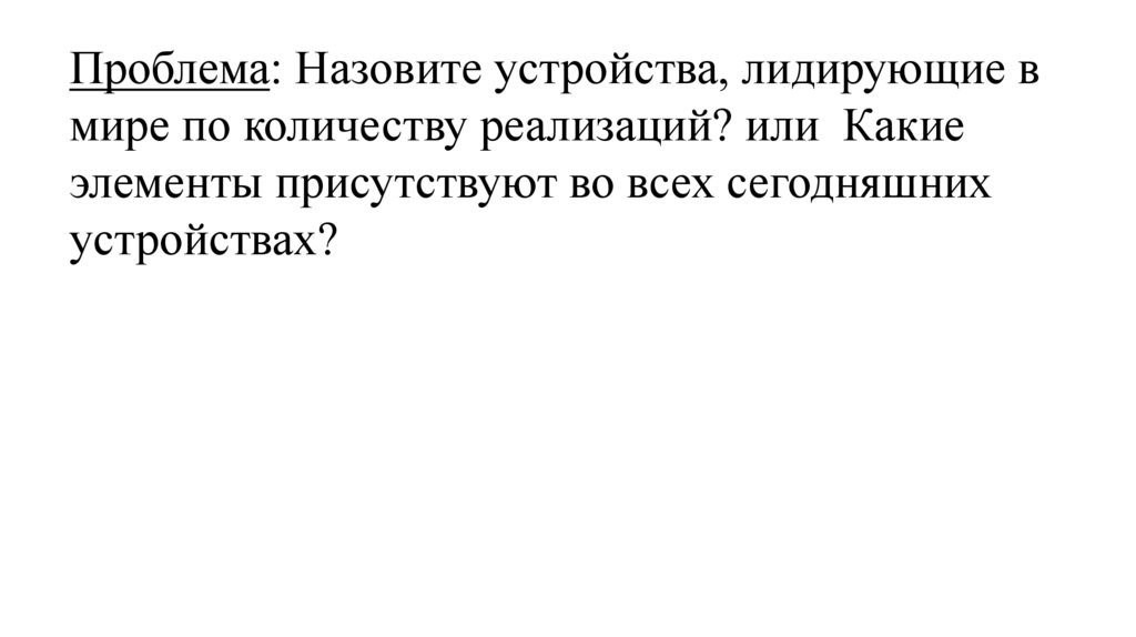 Проблема: Назовите устройства, лидирующие вмире по количеству реализаций? или Какие