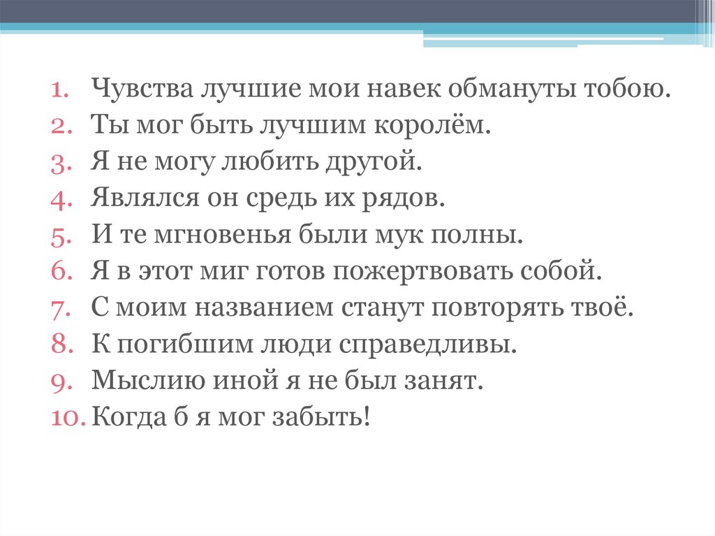 1. Чувства лучшие мои навек обмануты тобою.2. Ты мог быть лучшим королём.