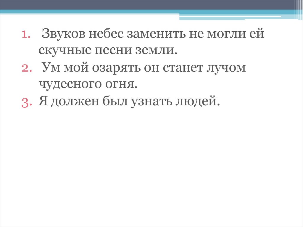 1. Звуков небес заменить не могли ейскучные песни земли.