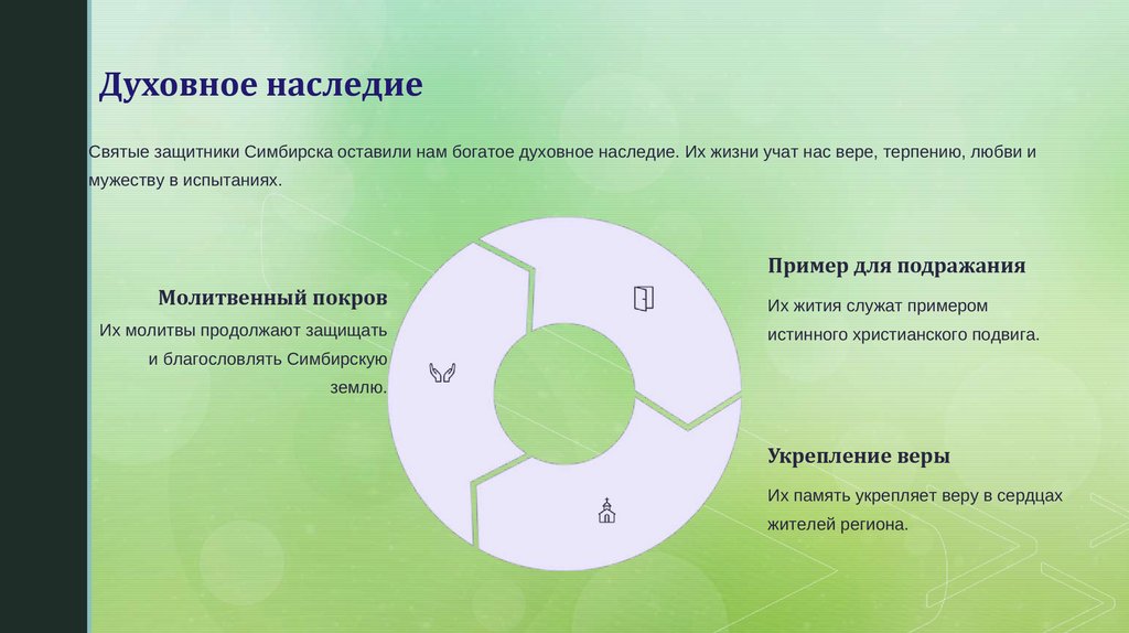 Духовное наследиеСвятые защитники Симбирска оставили нам богатое духовное наследие. Их жизни учат нас вере, терпению, любви и
