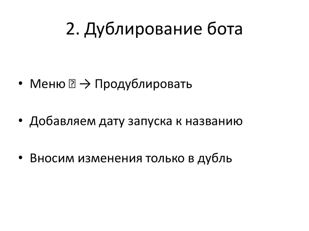 2. Дублирование бота• Меню ⁝ → Продублировать