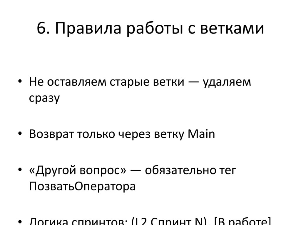 6. Правила работы с ветками• Не оставляем старые ветки — удаляем