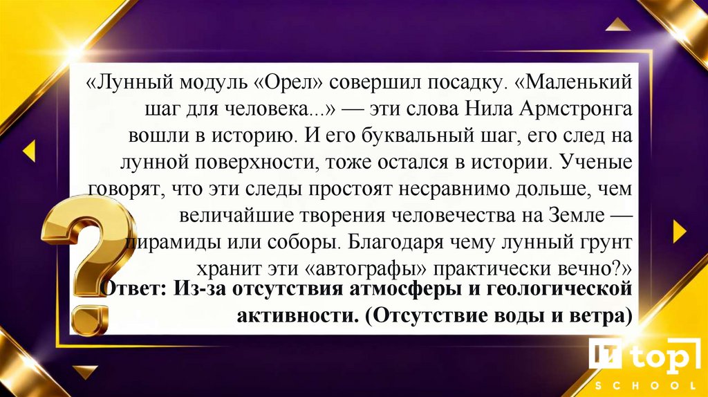 «Лунный модуль «Орел» совершил посадку. «Маленькийшаг для человека...» — эти слова Нила Армстронга