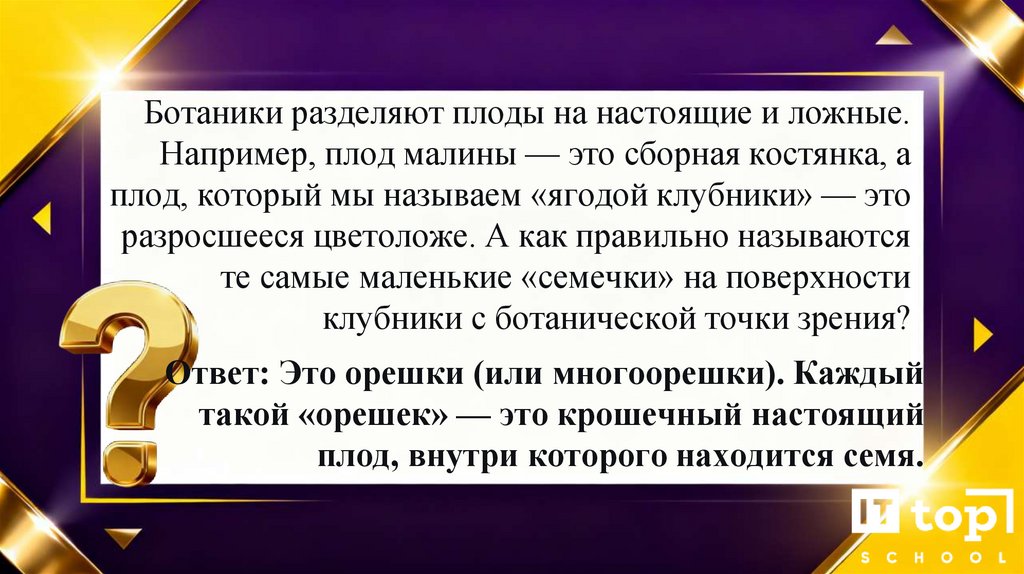 Ботаники разделяют плоды на настоящие и ложные.Например, плод малины — это сборная костянка, а
