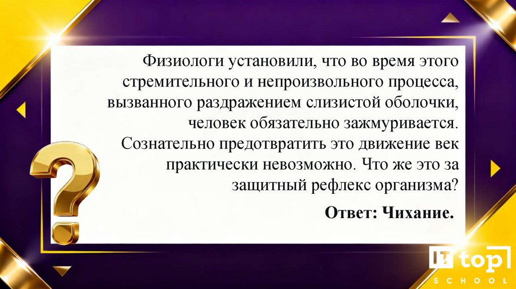 Физиологи установили, что во время этогостремительного и непроизвольного процесса,
