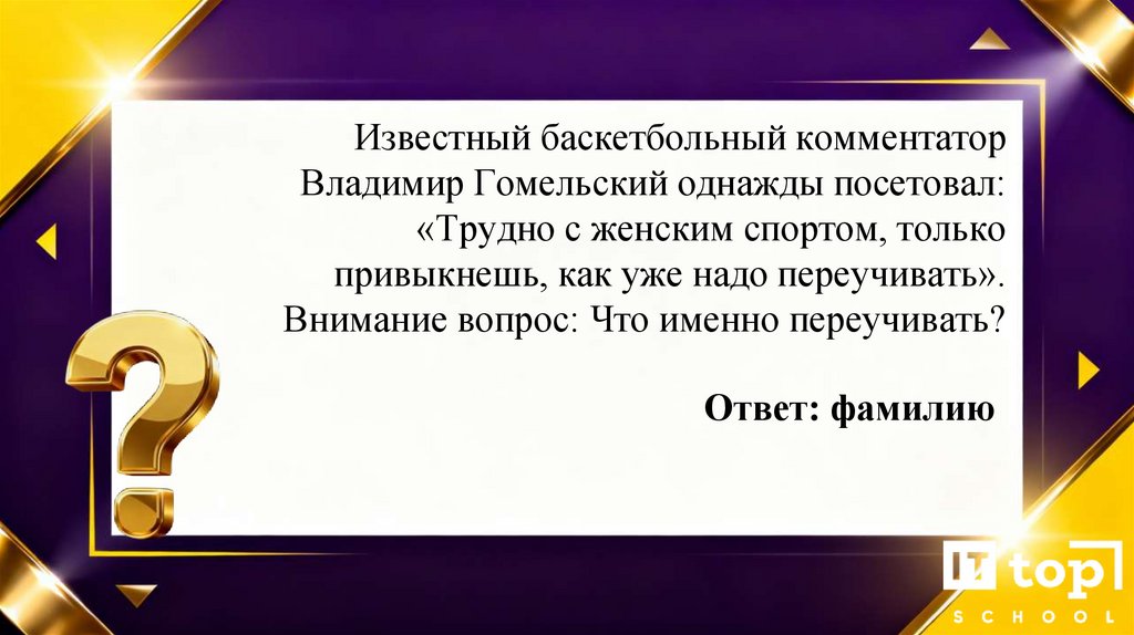 Известный баскетбольный комментаторВладимир Гомельский однажды посетовал: