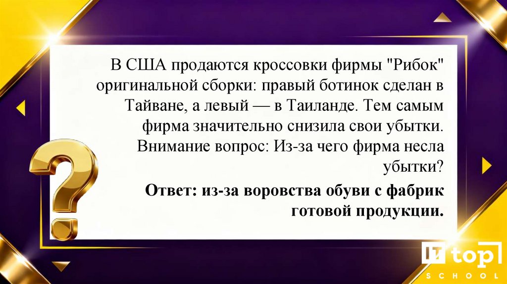В США продаются кроссовки фирмы "Рибок"оригинальной сборки: правый ботинок сделан в