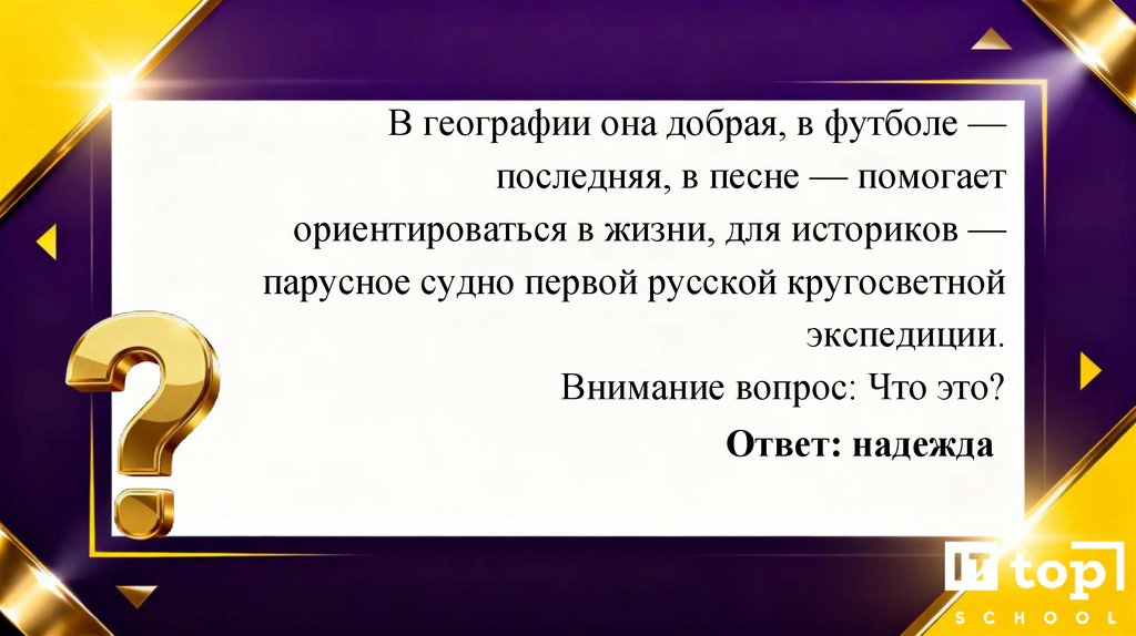 В географии она добрая, в футболе —последняя, в песне — помогает
