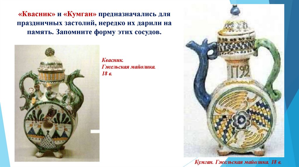 «Квасник» и «Кумган» предназначались дляпраздничных застолий, нередко их дарили на