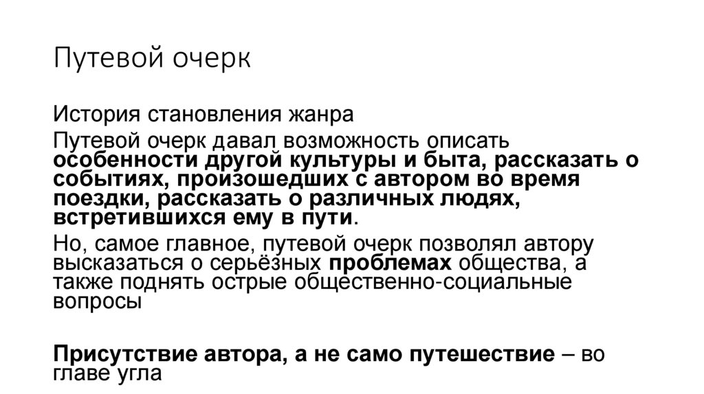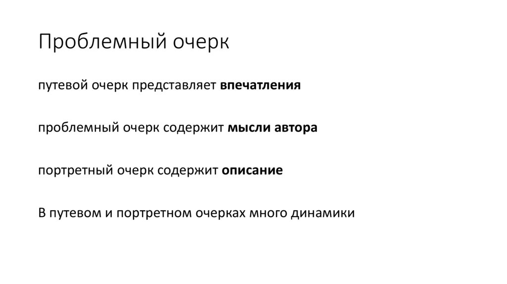 путевой очерк представляет впечатленияпроблемный очерк содержит мысли автора