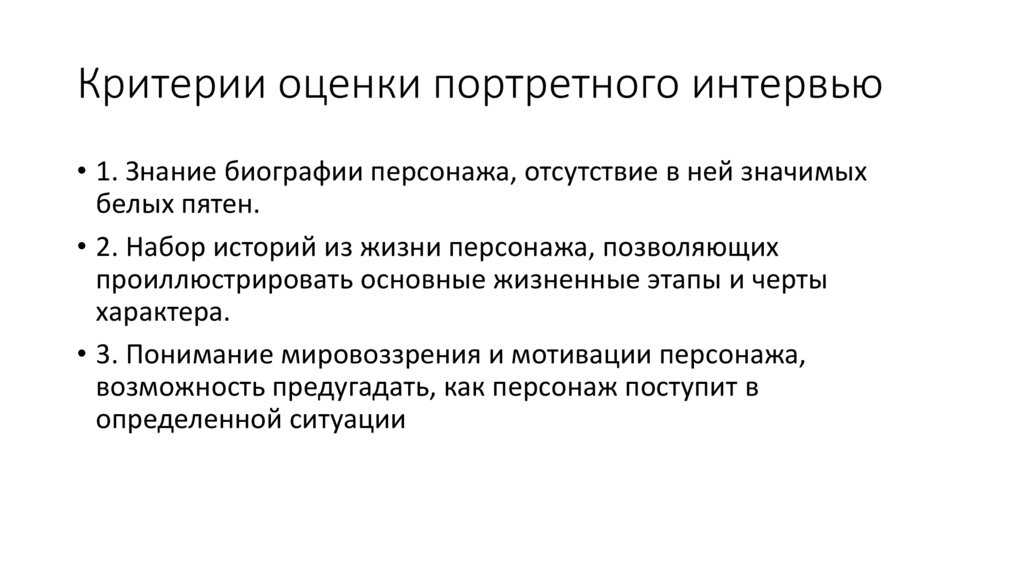 • 1. Знание биографии персонажа, отсутствие в ней значимыхбелых пятен.